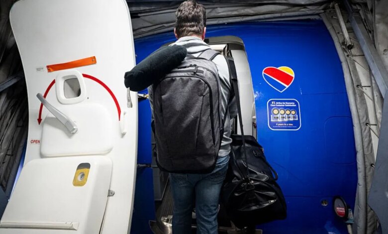 A video shows the man saying to the seated passenger, “So if your wife’s over there talking to another dude, man, you’re just gonna sit there and take it like a little b—? But you feel like you can talk to me? Is that fair?” A Southwest employee immediately told him to leave, saying, “There’s no excuse, so I’m telling you you have to get off.”